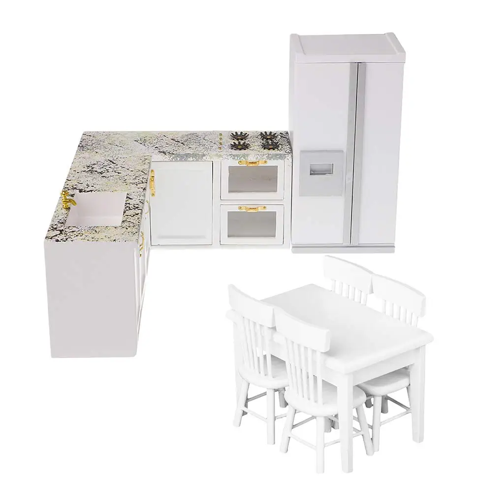 1/12 Miniature Wooden Kitchen Cabinet Refrigerator Table Chair Doll House Furniture Accessories Toy