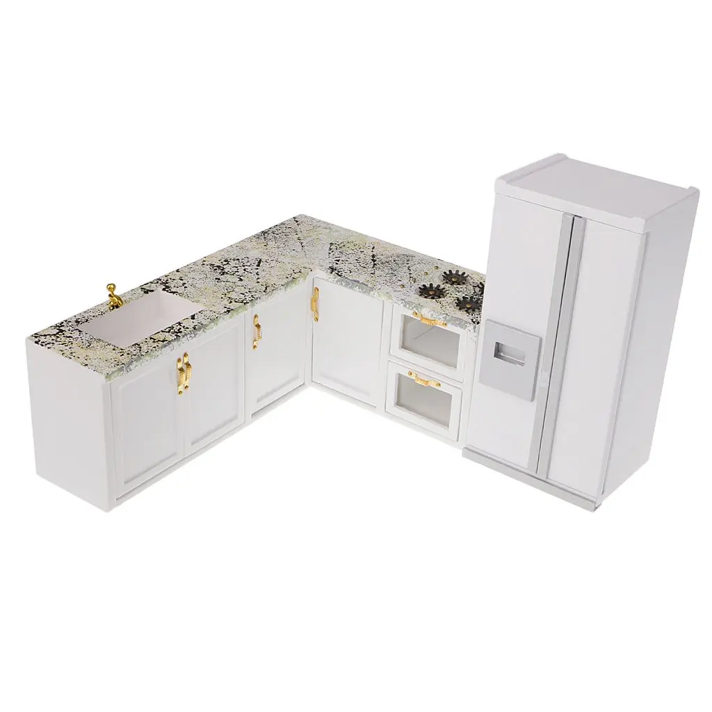 BEST 1/12 Miniature Wooden Kitchen Cabinet Refrigerator Table Chair Doll House Furniture Accessories Toy