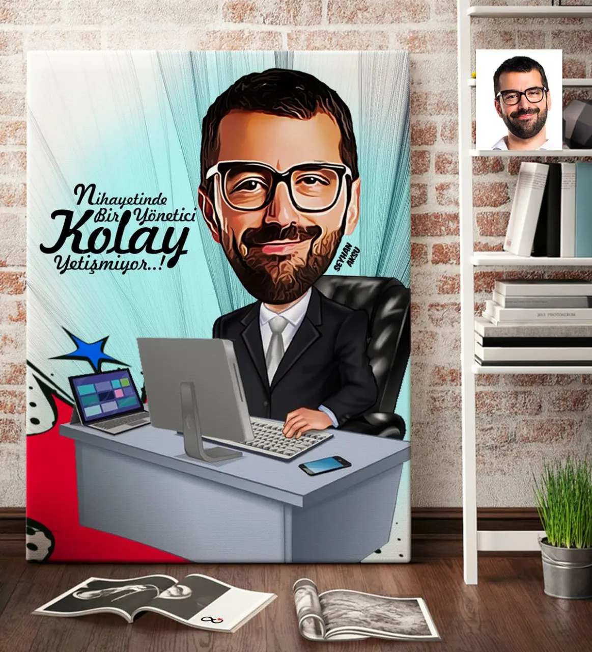 Personalized Mr General Manager Cartoon Canvas Table (70x100 cm.) 1
