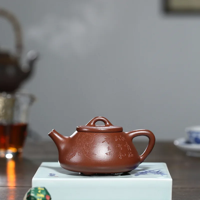 BEST QUALITY all hand depicting child stone gourd ladle pot of 230 cc undressed ore smelting purple clay teapot