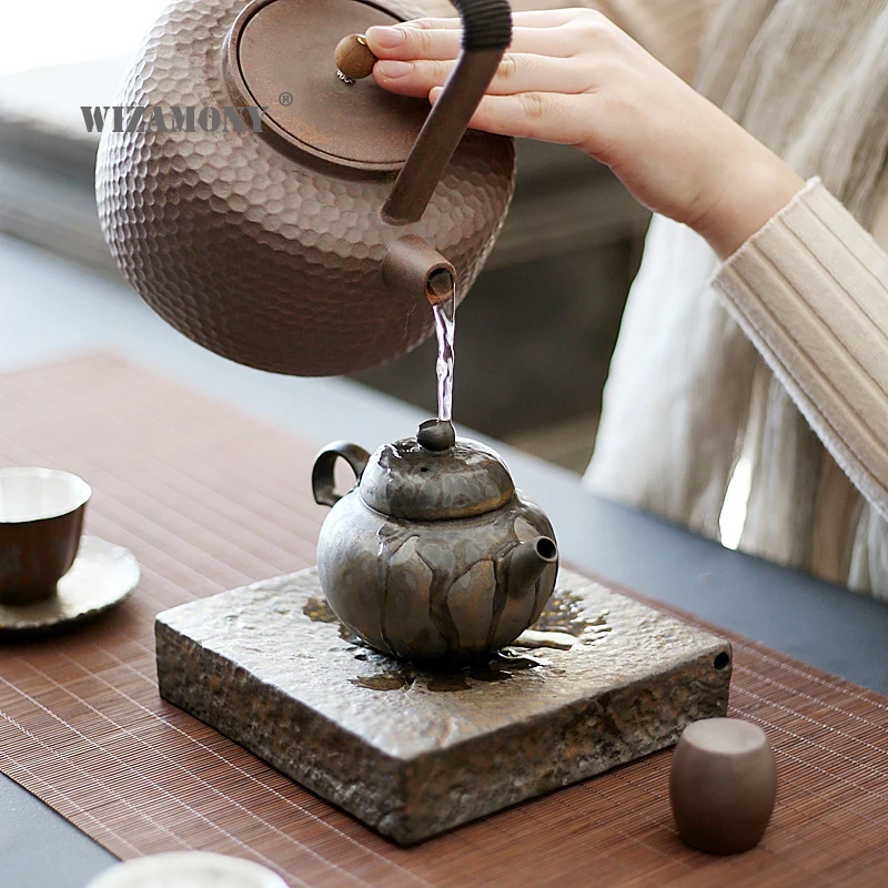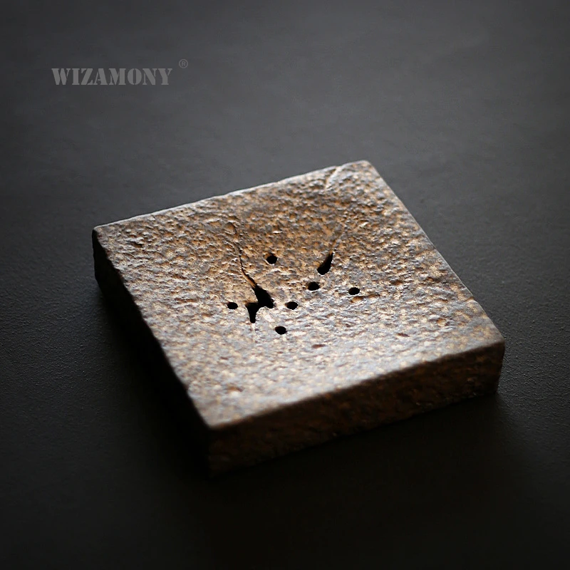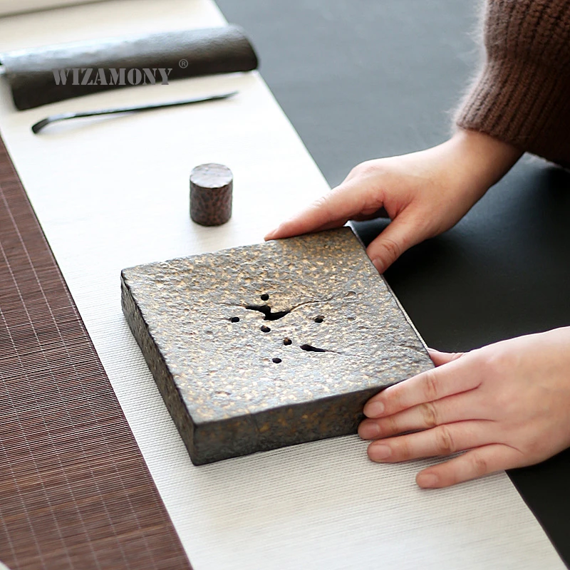 BEST QUALITY WIZAMONY Handmade Crude Pottery Black Golden Glaze Tea Tray Tea Trivets Square Water Holder Japanes