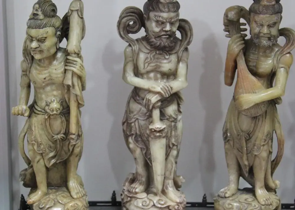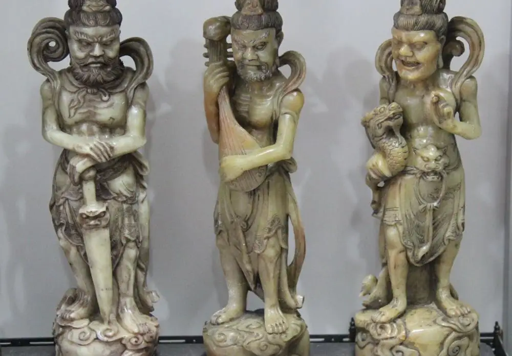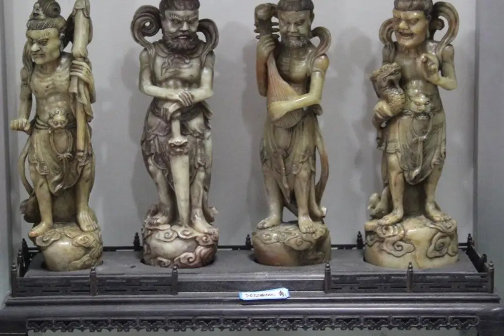 TOP 20" Chinese Natural Shoushan Stone 4 Great Heavenly Kings Dharma Kong God Set