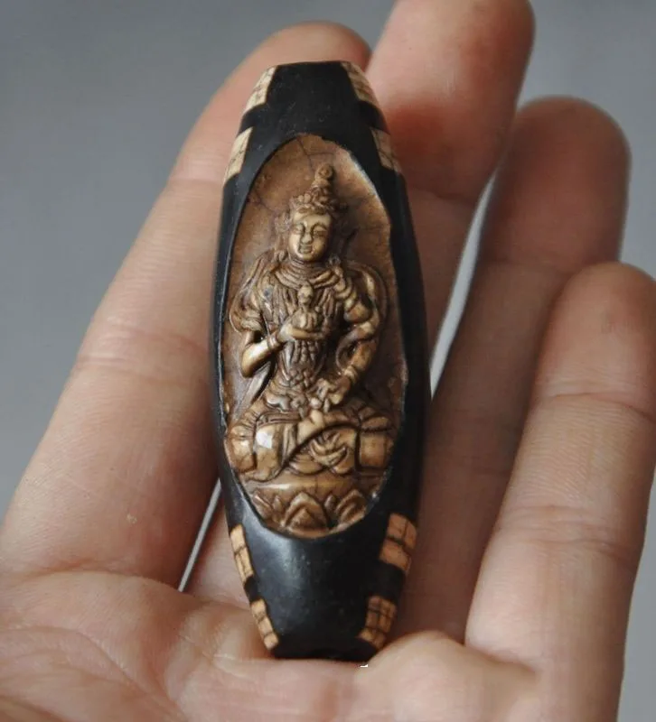 HOT Sale Crafts statue old tibet buddhism agate Dzi Bead tara Kwan-Yin Guan Yin amulet Pendant statue hallow