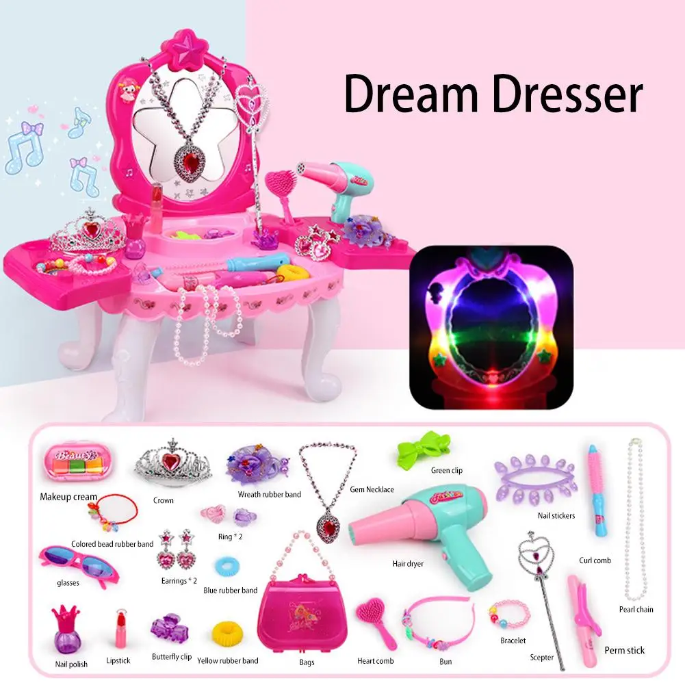 Best Quality 24pcs Dresser Toys Set Makeup Table Set Pretend Play Toy Perfect Simulation Table Dressing Set Play