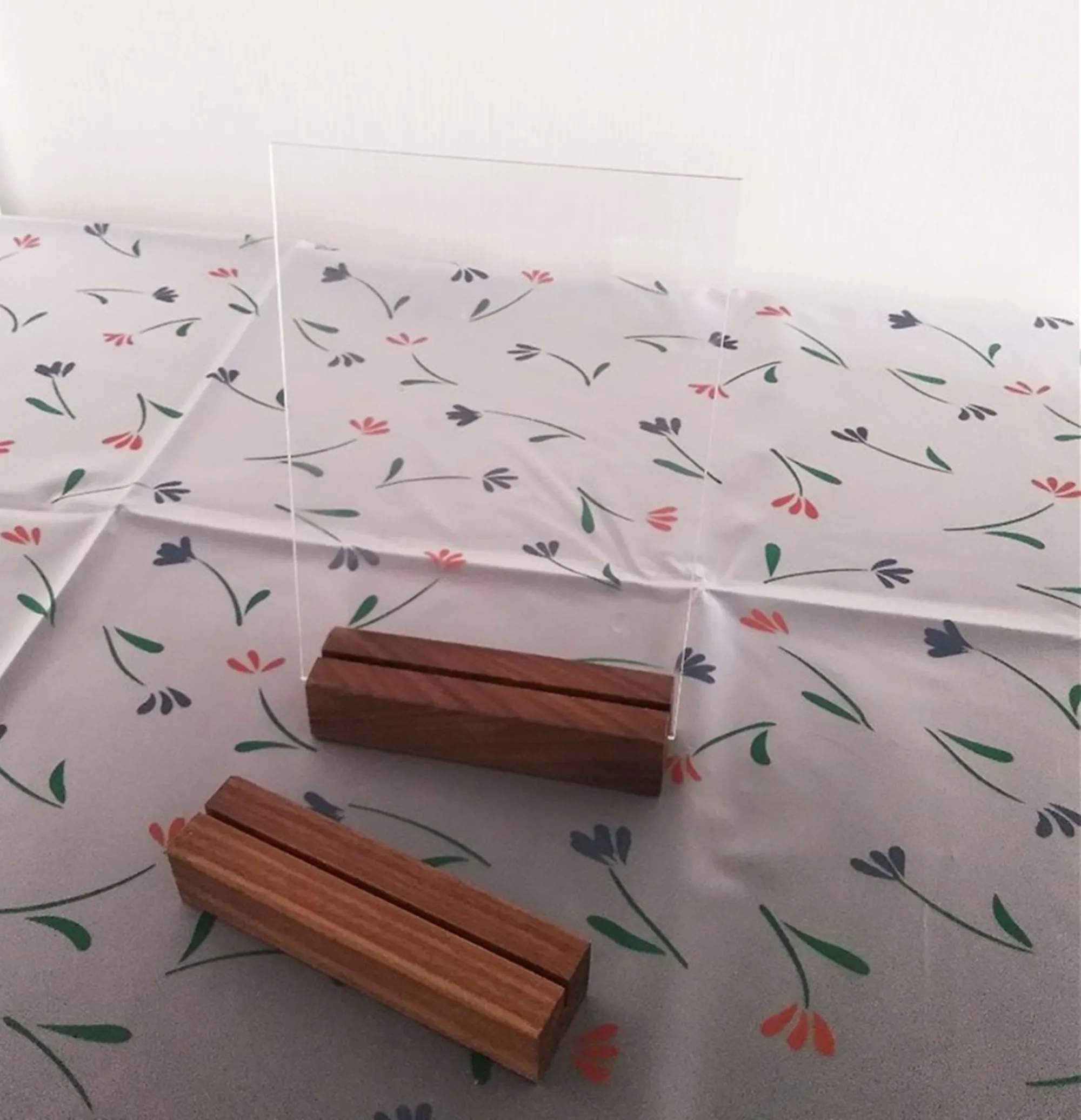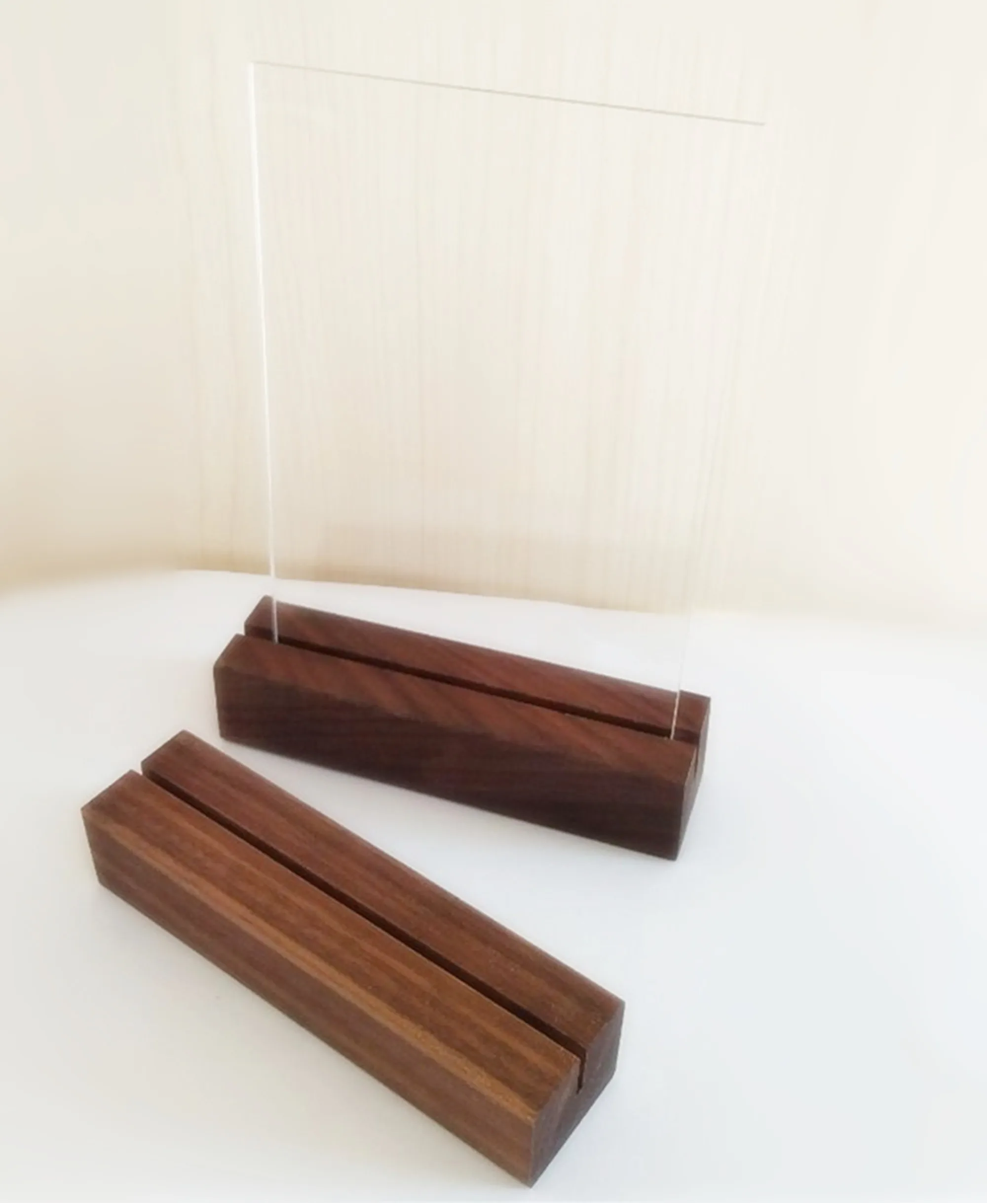 5SETS of Blank Acrylic Sign Sheets with Rustic Walnut Wood StandsAcrylic Table Number with Wood Hol