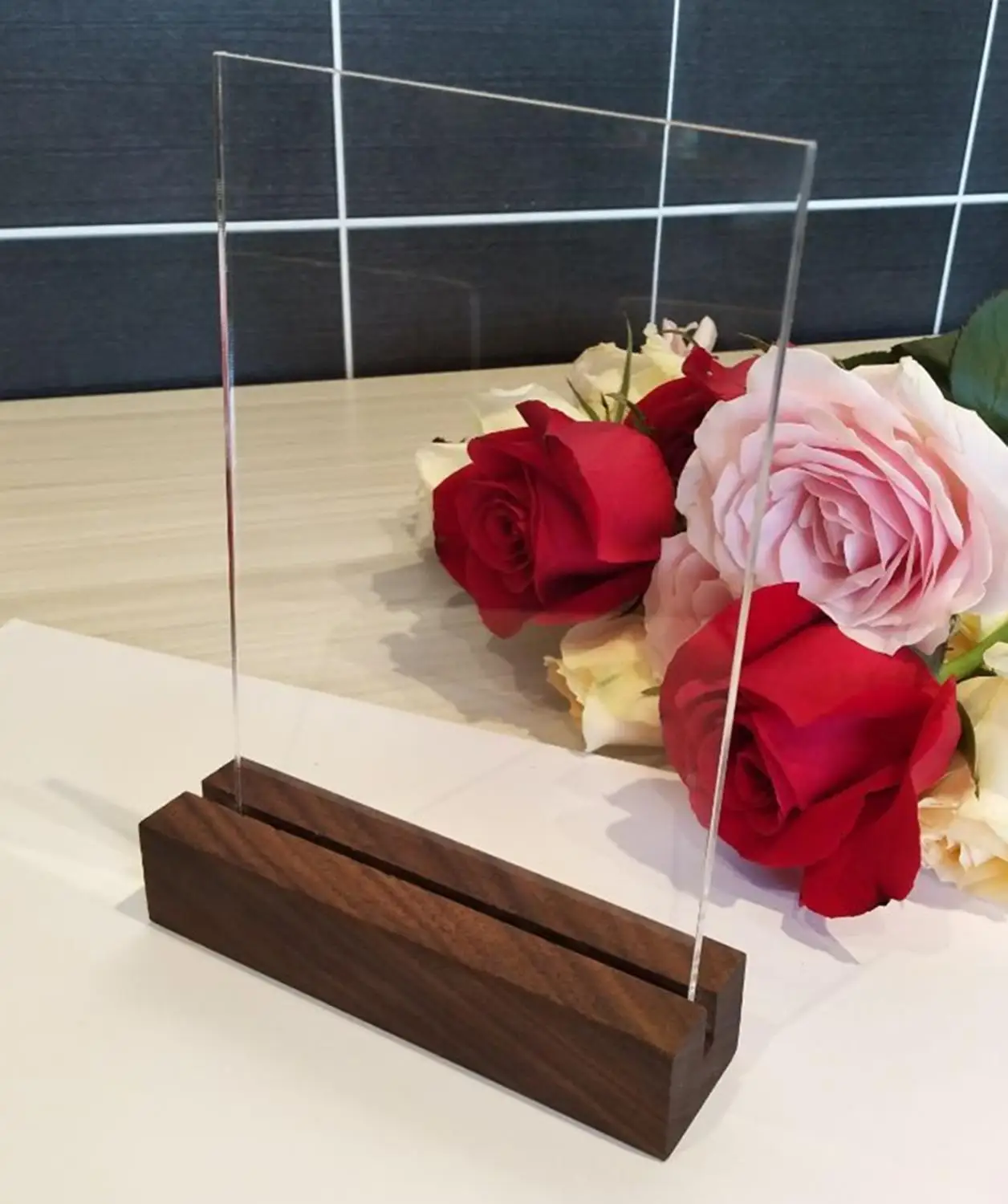 BEST 5SETS of Blank Acrylic Sign Sheets with Rustic Walnut Wood StandsAcrylic Table Number with Wood Hol