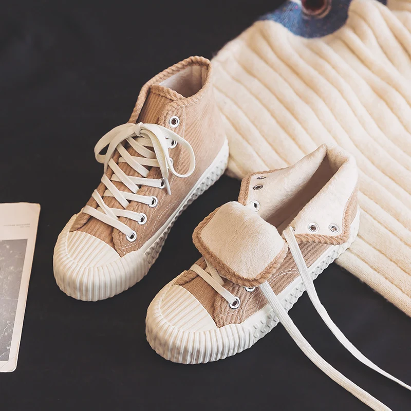 Autumn Winter Shoes Women Fur Sneakers Girls Casual Shoes Thin Fur Lined Lace Up Flat Heel Short Pl