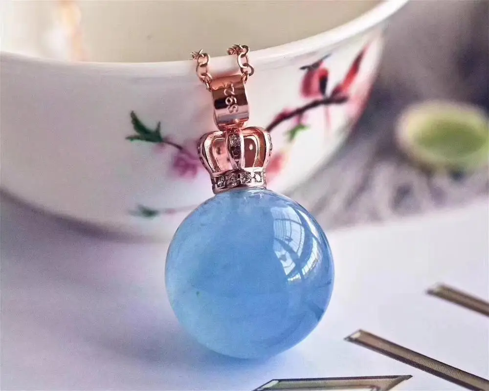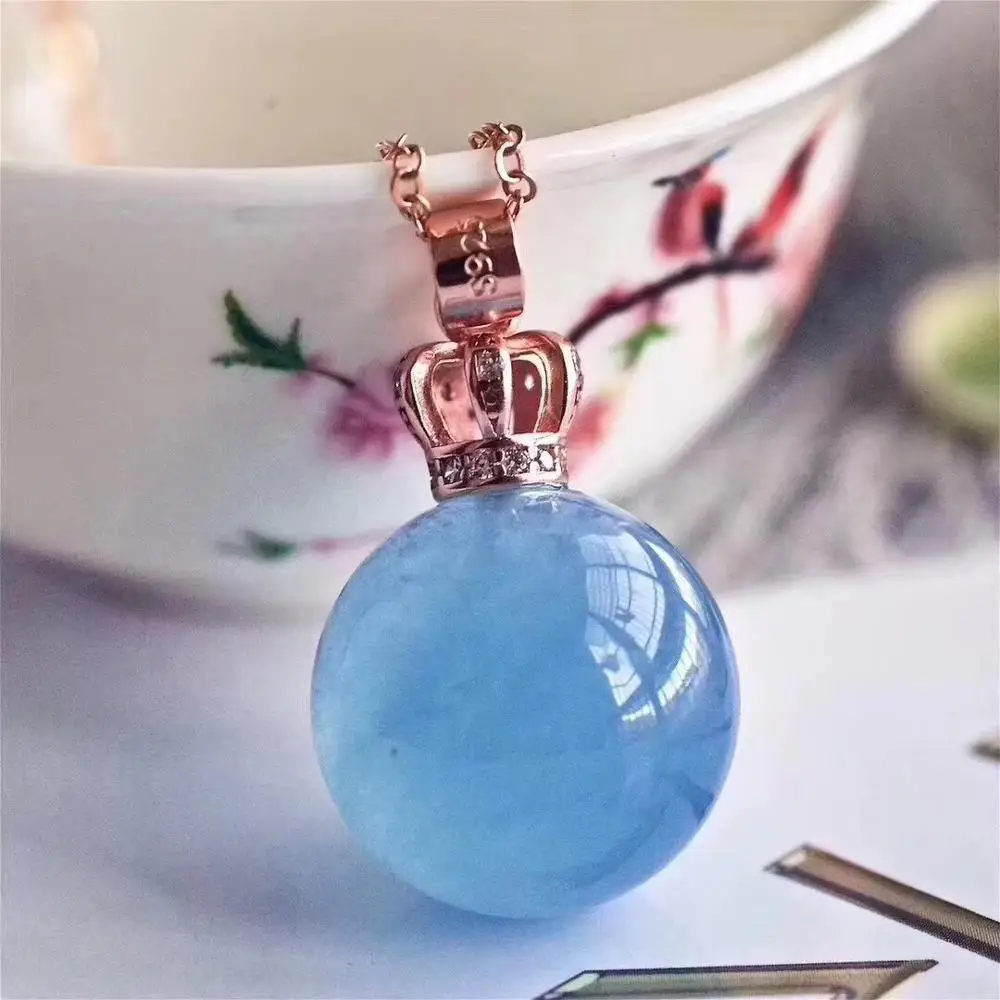 ORIGINAL Genuine Natural Blue Ice Aquamarine Pendant Women Man Gemstone Sphere Ball 16mm Reiki Stone Fashion