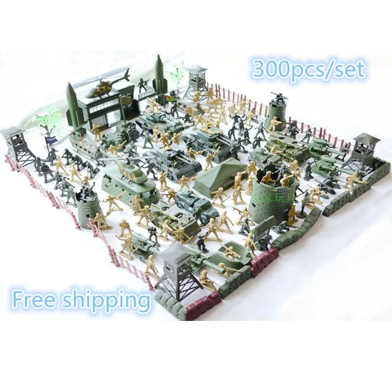 ORIGINAL Set plastic toy small soldier boy sand table model toy Full 300pcs/set soldier Military Bases Set c